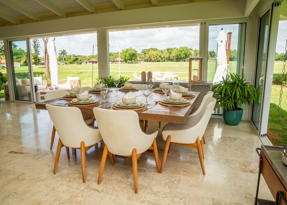 This Luxury and Spacious Five-Bedroom Villa for 16 guests is in the Exclusive 5-Star Casa de Campo Resort, right on the golf course “The Links”. Enjoy Beautiful golf course views from the spacious and comfortable living areas. Fully equipped kitchen and large private terrace with a pool and garden. The Villa comes with air conditioning in all bedrooms and studios, ceiling fan, 3 large TVs with Cable, Washer/Dryer, daily cleaning. Located within walking distance from Minitas Beach. Close to all facilities.
